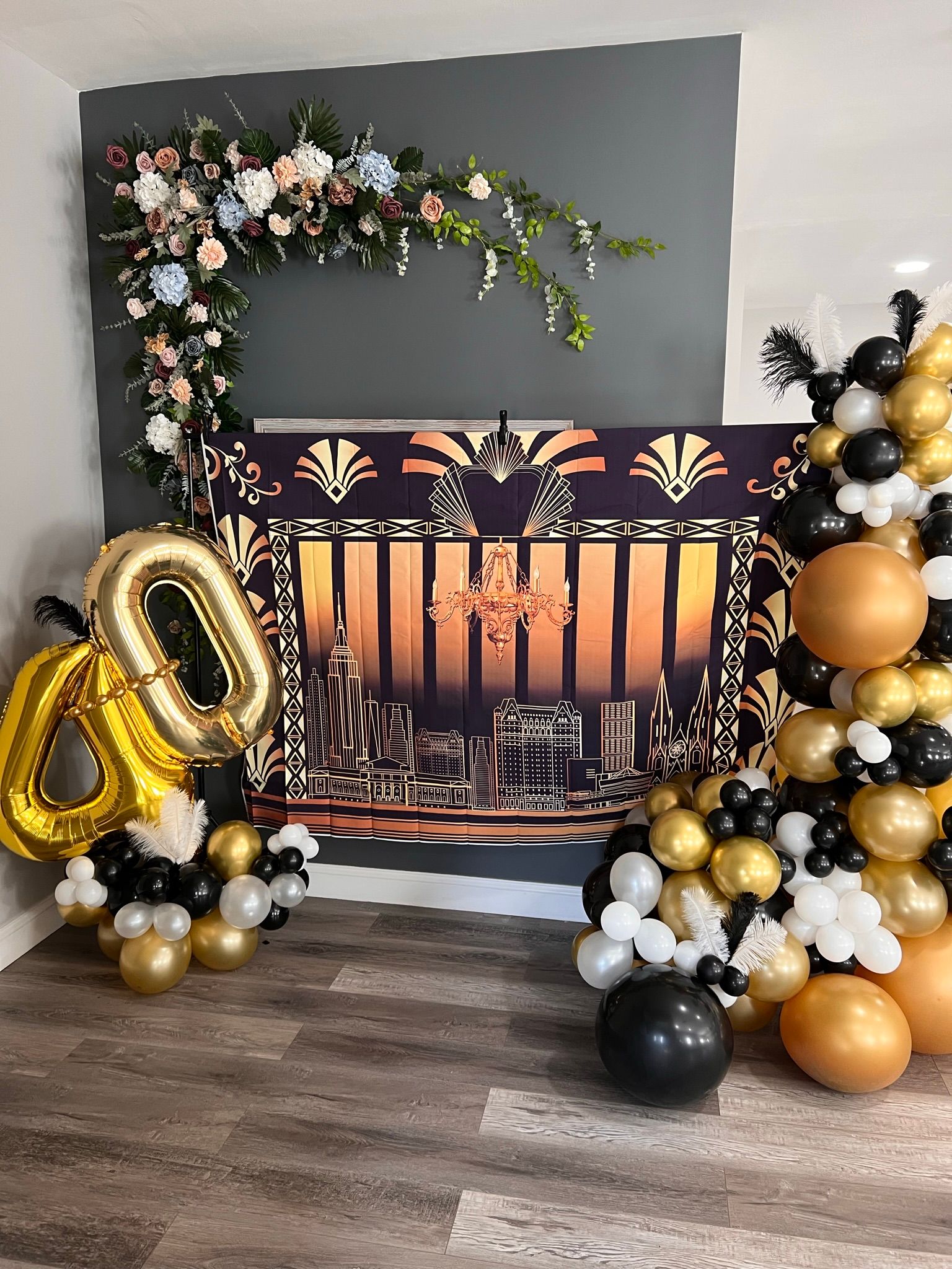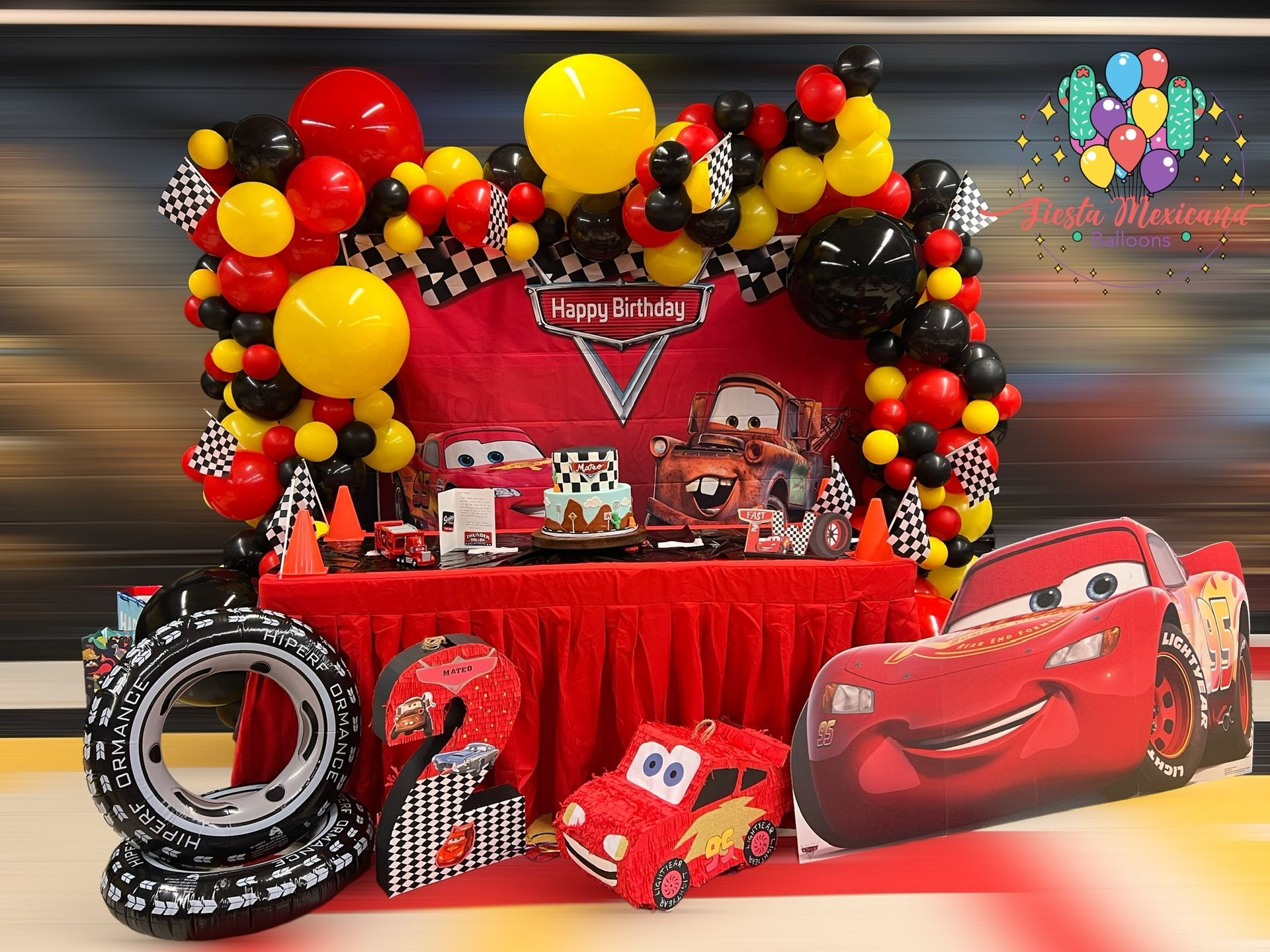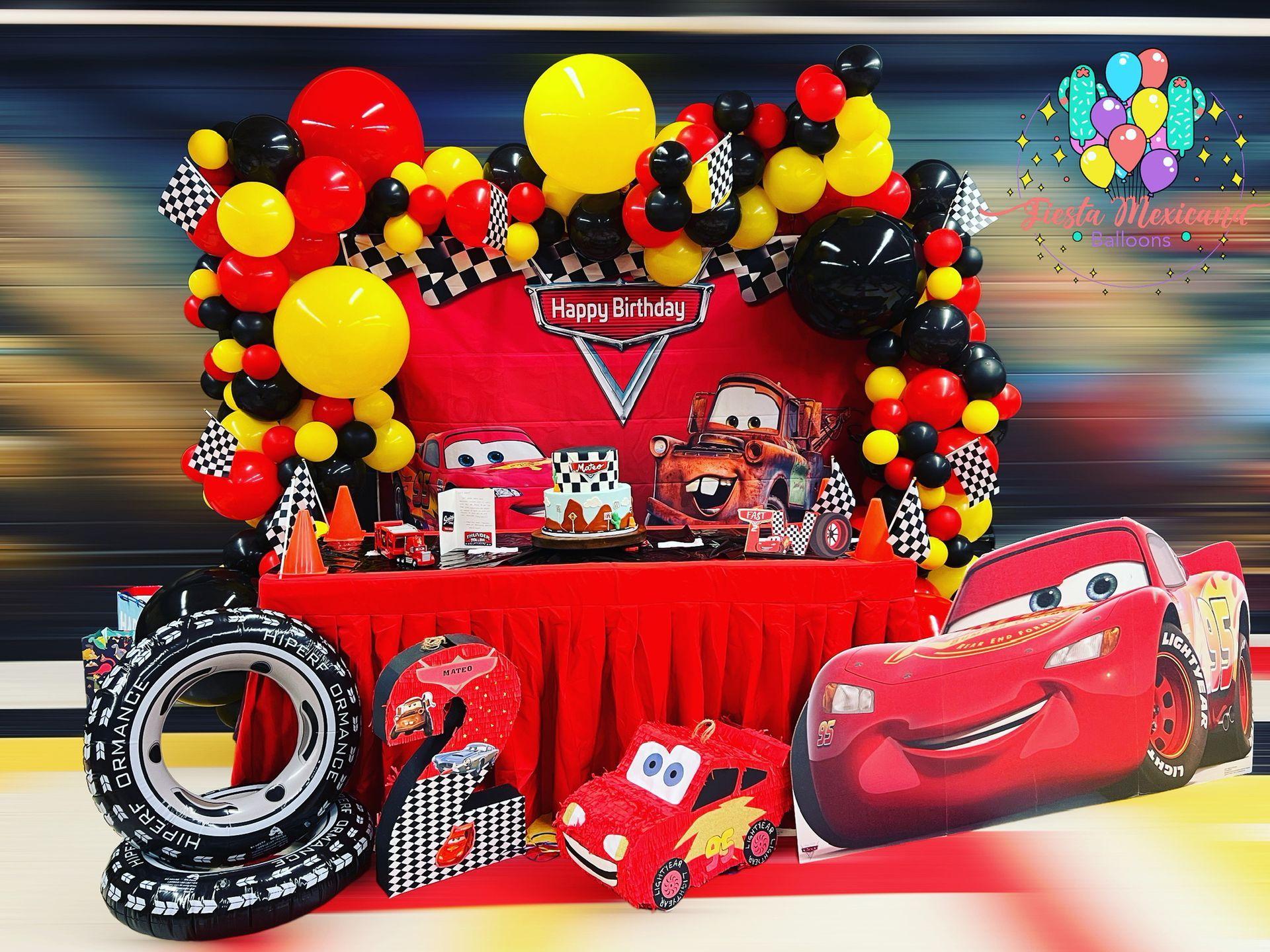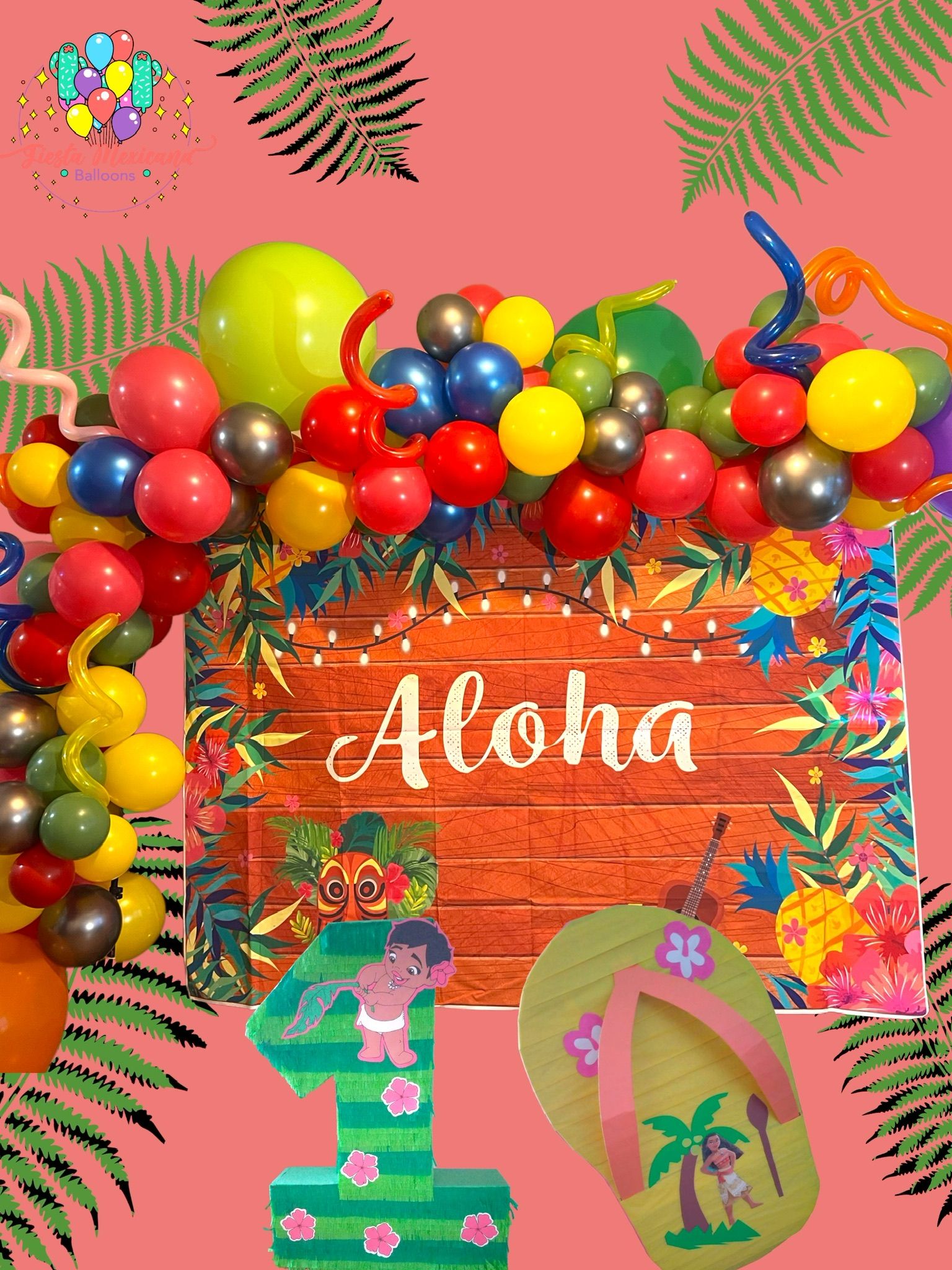 Custom made Balloon Garland, Cardboard Figure, Backdrop, 1 custom made Piñata